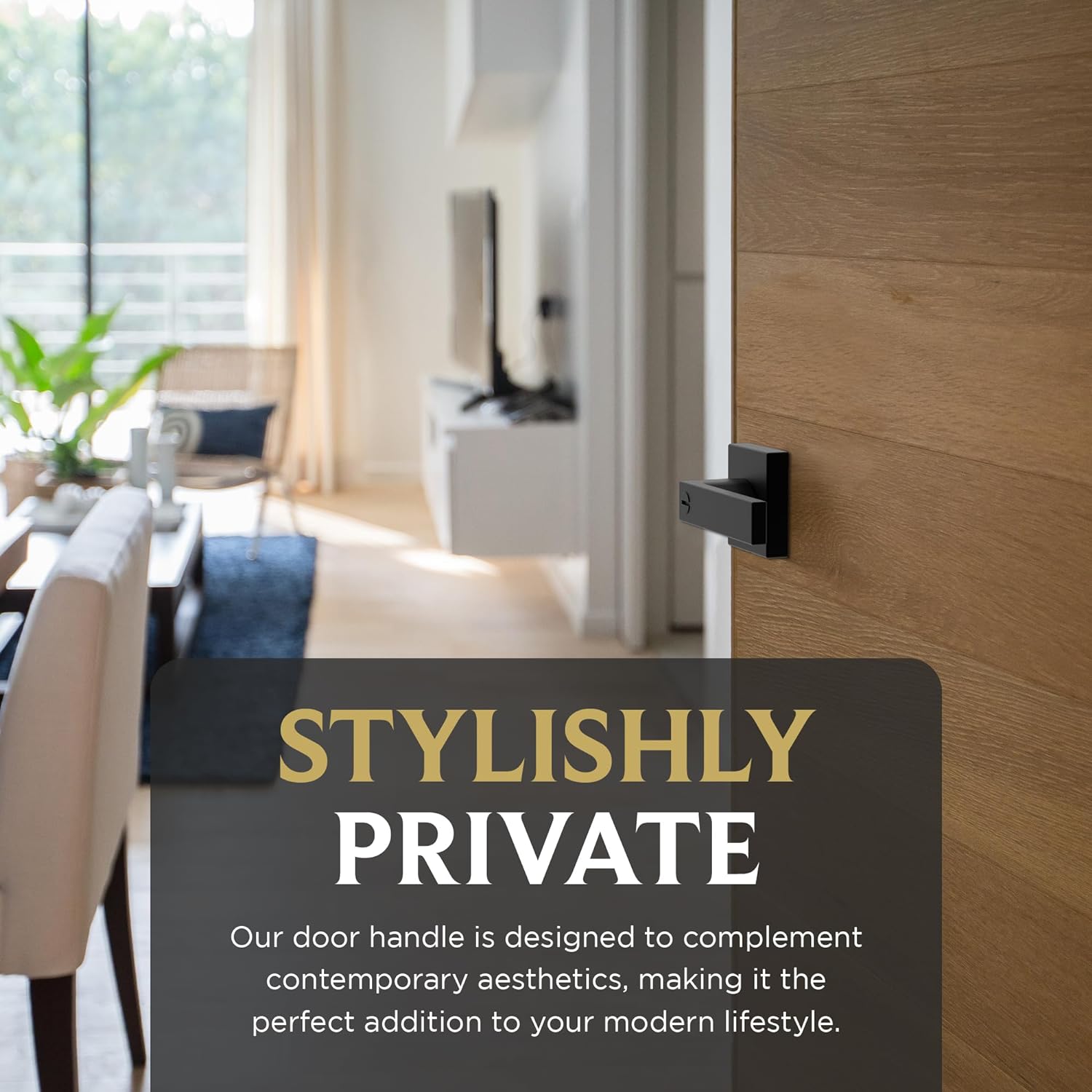 Matte Black Door Handle with Privacy Door Lock - Modern Keyless Lever Door Handle for Interior Doors - Stainless Steel